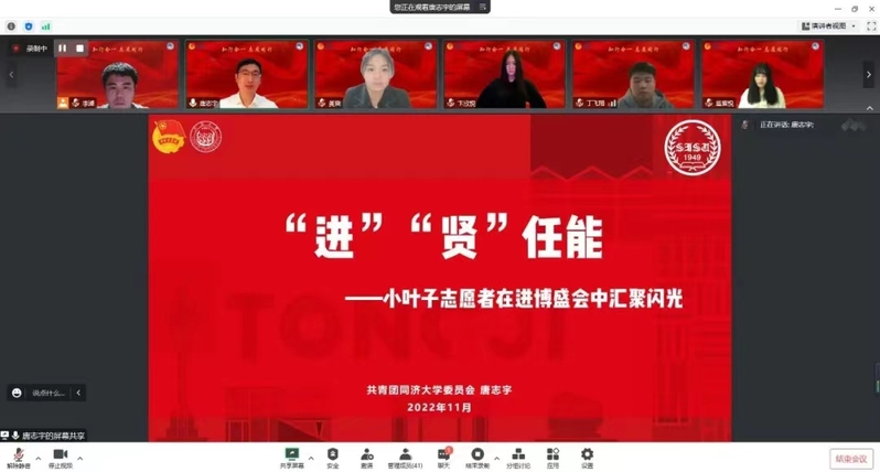 10月27日19时,同济大学团委书记唐志宇为贤达“小叶子”们开展了题为“‘进’‘贤’任能:小叶子志愿者在进博会中汇聚闪光”的线上主题培训。他用细腻的语言和生动的案例分析,阐明了志愿服务的核心与基础,使每位志愿者能够更直观地学习与理解。