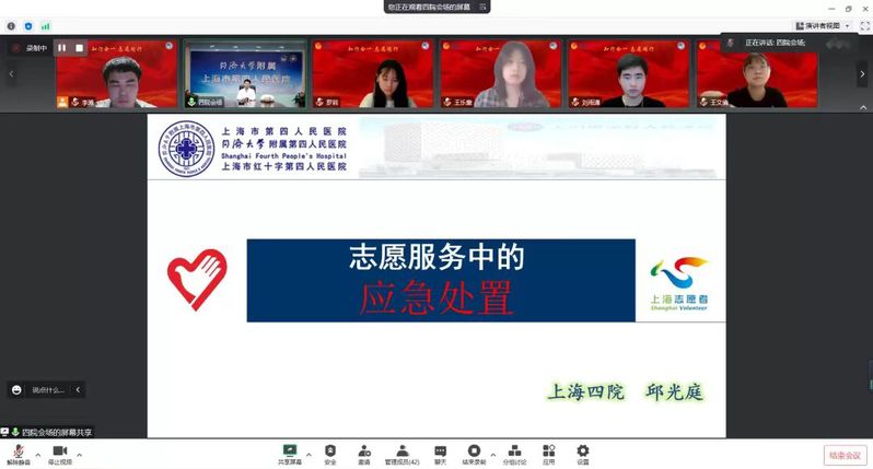 10月26日19时,上海市第四人民医院神经外科主治医师邱光庭为贤达“小叶子”们开展了题为“志愿服务中的应急处置”的线上主题培训。他为“小叶子”们列举了志愿服务中可能遇到的突发情况及应急处置方案,并详细介绍了心肺复苏的操作方法、海姆立克急救法及多种外科创伤急救法。
