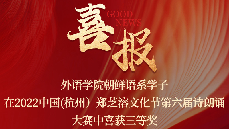 2022中国(杭州)郑芝溶文化节第六届诗朗诵大赛决赛于10月29日落下帷幕,sjb官网外语学院朝鲜语专业黄梦琳同学喜获本科组三等奖。