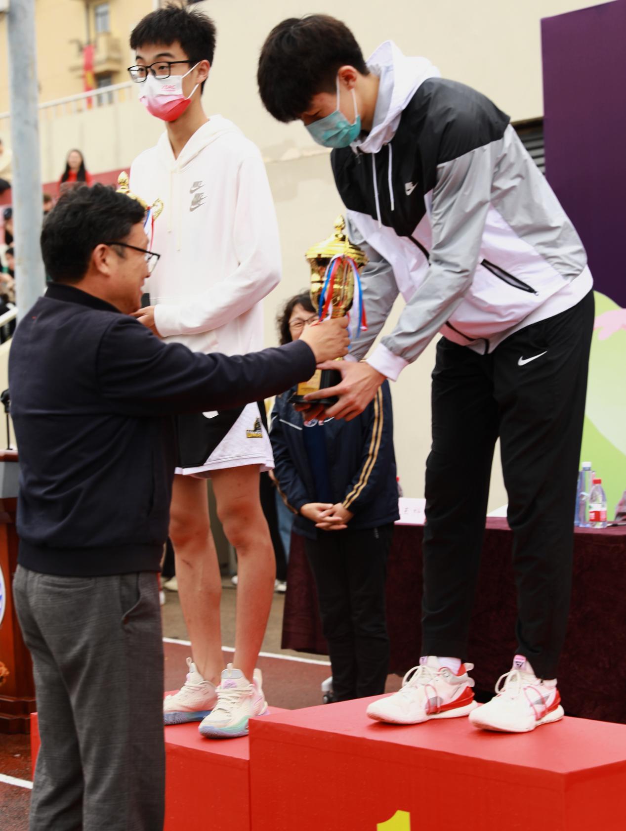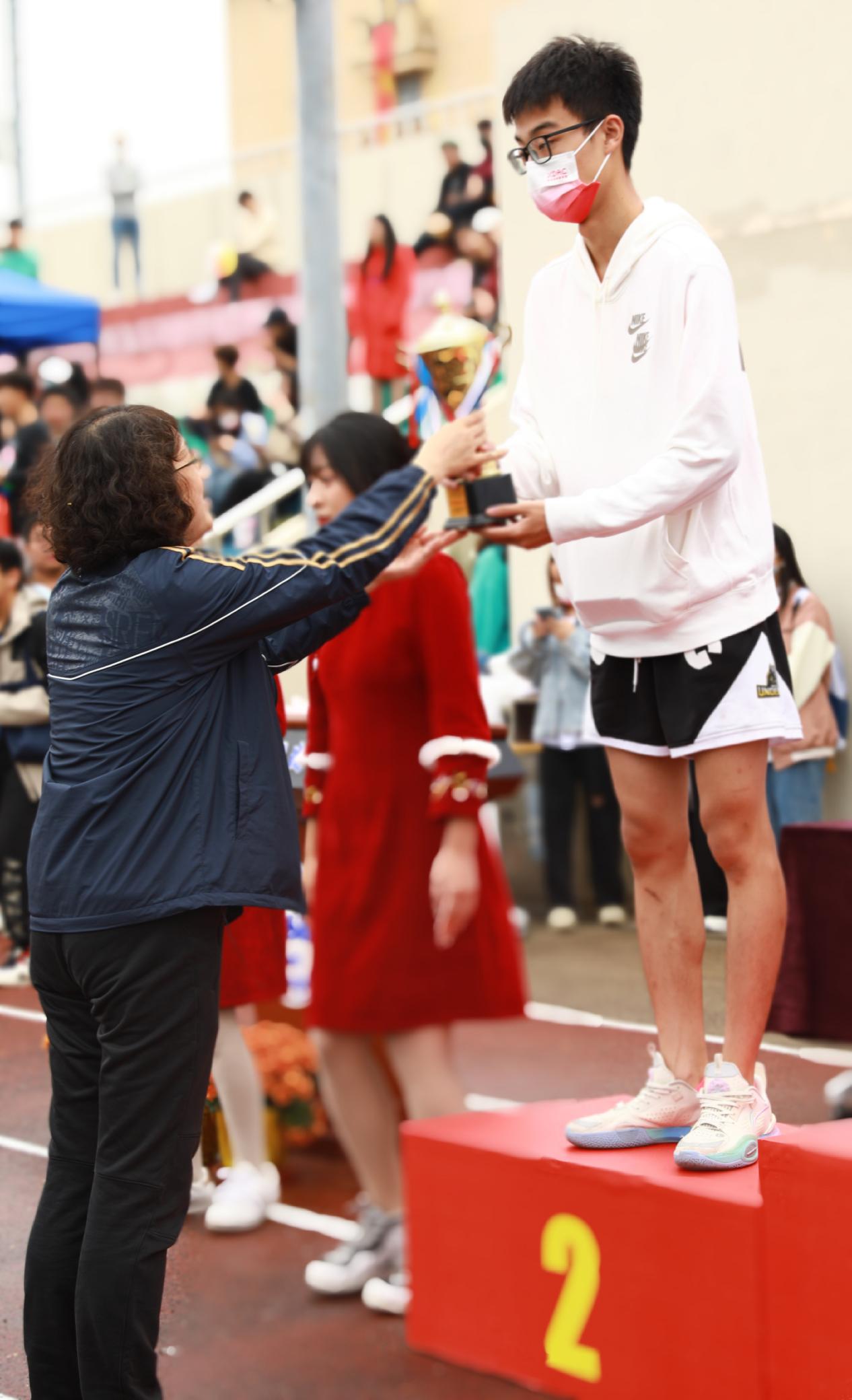 下午二时三十分,在观看了精彩纷呈的闭幕式表演后,梁副校长宣读了男子、女子团体奖获奖名单,根据竞赛规程获得男女团体总分前六名的分别是商学院、艺术与传媒学院、教育学院、外语学院、国际交流学院、数据科学学院。商学院拔得男、女子团体赛头筹,艺术与传媒学院位列第二名,教育学院、外语学院分别获得男、女子团体奖第三名。数据科学学院学生陈芳,打破学校两项记录,分别为跳远4.38米,200米30.97秒!校领导们依次为获奖团队颁奖。