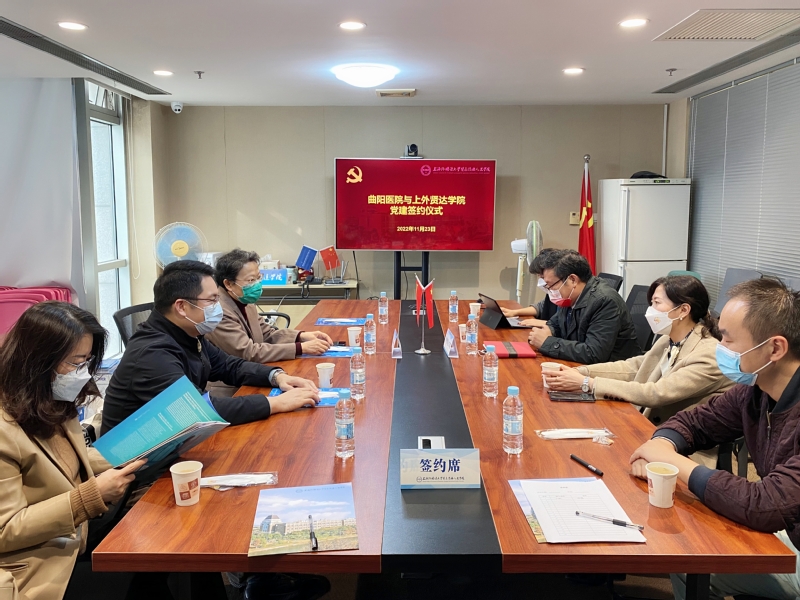 11月23日,世俱杯sjb官网与曲阳医院在上外贤达学院虹口校区签订党建共建协议。上海曲阳医院院长丁秀丽,书记施兴灿,护理部主任张丽波;上外贤达学院党委副书记、纪委书记王科,党委副书记、工会主席郑虹出席了共建座谈会。