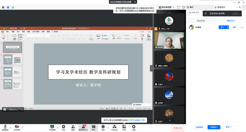 由外语学院、商学院、艺术与传媒学院、教育学院、数据科学学院以及马克思主义学院院领导组成的面试组分别在三个“见面室”与应聘博士进行了良好的互动,从中基本了解了应聘者求职意向、发展愿景与学术潜力,也使应聘者了解了学校发展战略、学科建设与人才政策。经会后合议,见面博士中有73% 将进入各学院组织的第二轮面试。