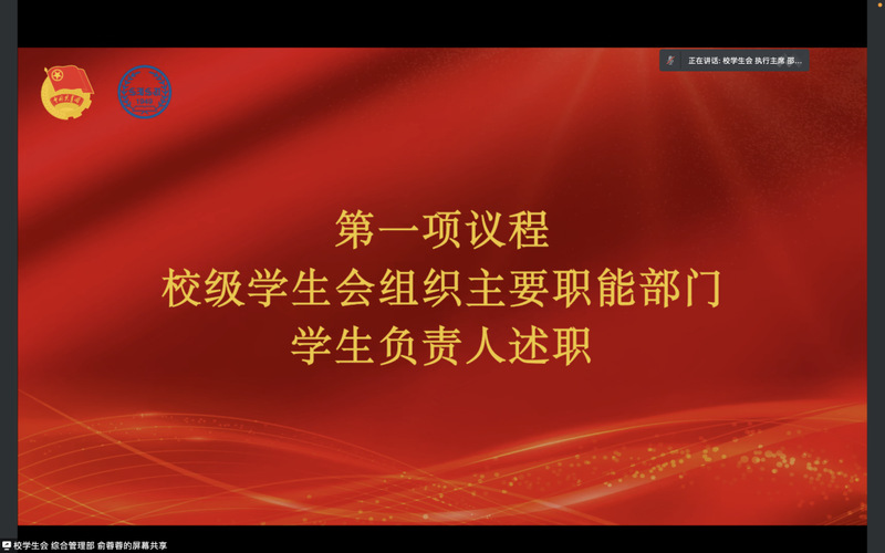大会伊始,校级团学组织主要职能部门负责人依次述职,对本年度工作进展情况、工作不足与改进等方面进行总结陈述。随后,各二级学院团委学生兼职副书记就学院团委组织建设情况、工作回顾和工作展望等方面进行汇报陈述。紧接着,各二级学院学生会主要负责人就组织架构、工作内容和工作计划等方面进行阐述报告。