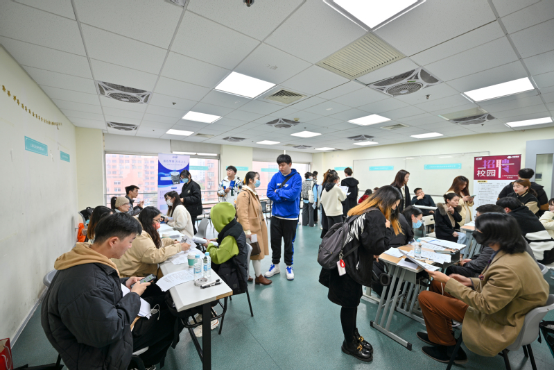招聘会现场,各学院学生积极投递简历,接受企业挑选。