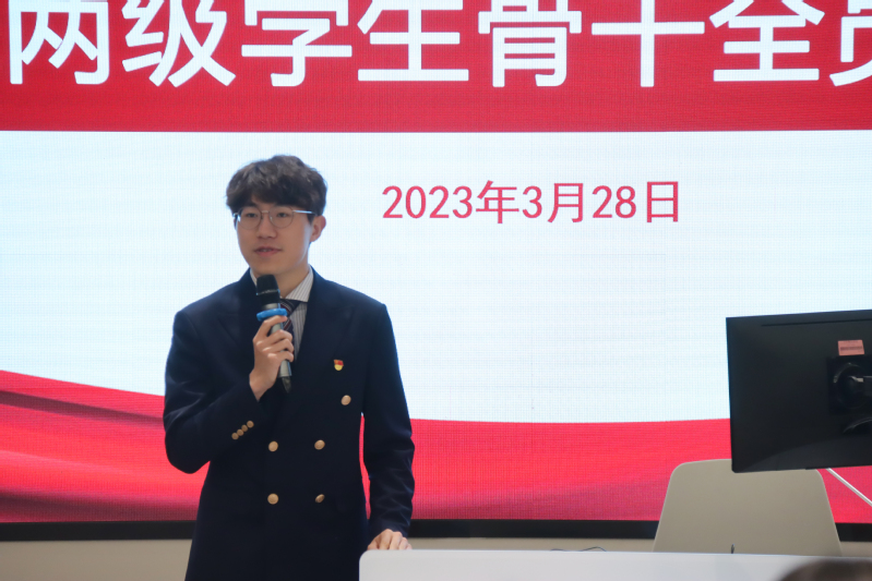 随后,校团委志愿者工作部王佳枫、商学院团委学生会邱佩文进行工作经验分享;校学生会执行主席邵巍宸围绕理论学习、组织建设和校园文化等方面进行新学期学生会工作部署。