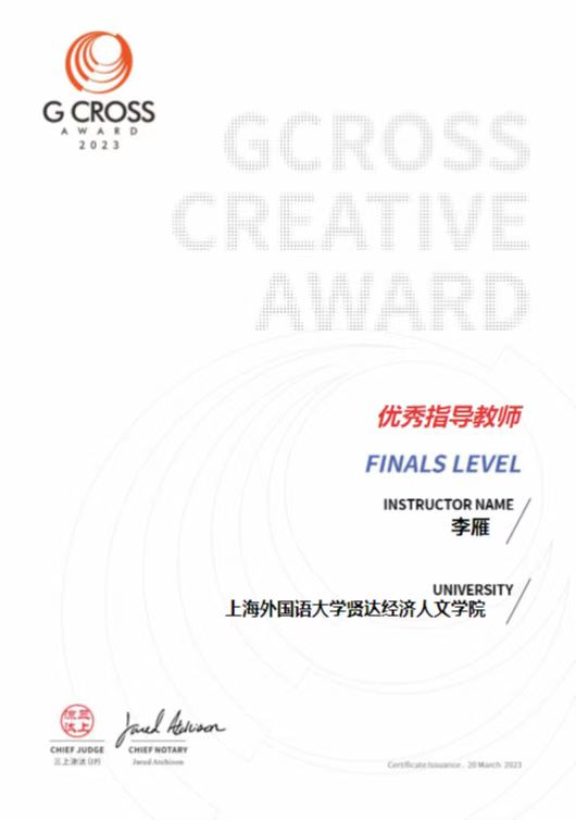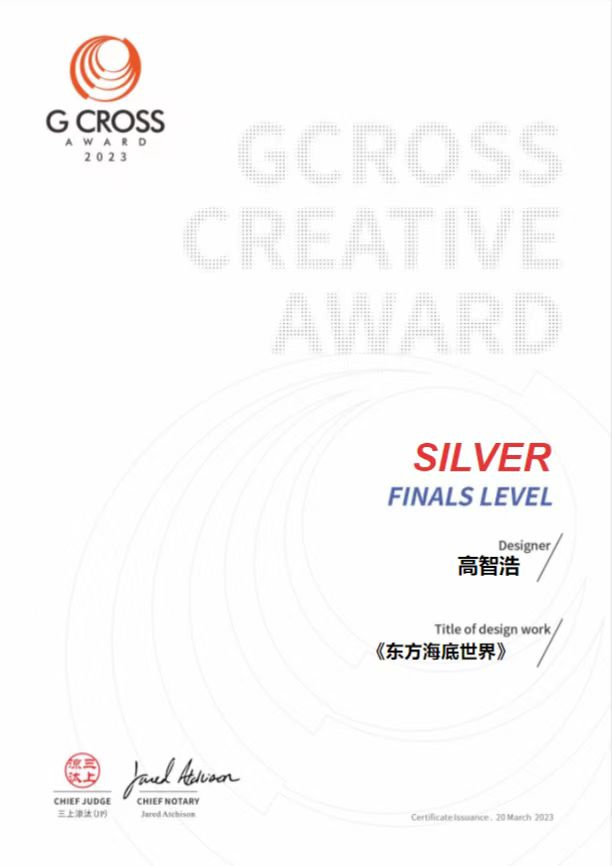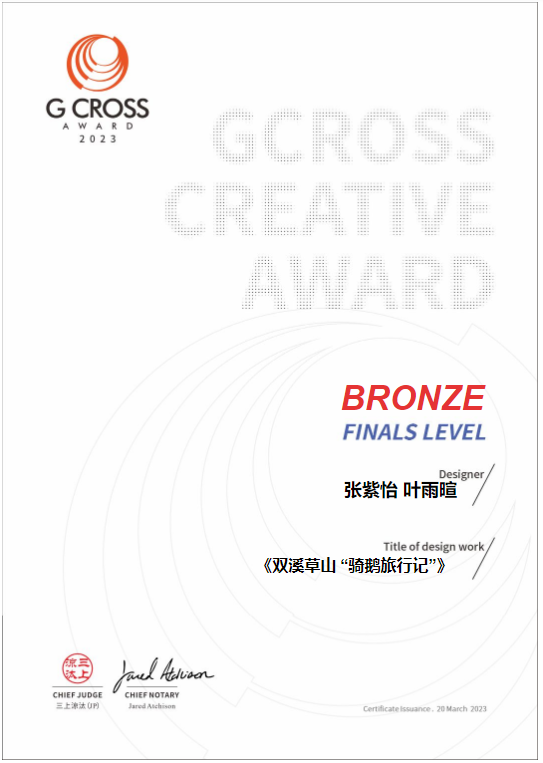 近日,G-CROSS全球大学生创意奖公布获奖名单,此次赛事中国赛区共有1338所院校组织参赛,15226人、27924件作品参赛。通过激烈的角逐,专业的评审,sjb官网艺术与传媒学院高智浩同学的作品《东方海底世界》获得银奖;张紫怡、叶雨暄同学的作品《双溪草山“骑鹅旅行记”》获得铜奖。李雁、黄雪君两位老师获得优秀指导教师奖。