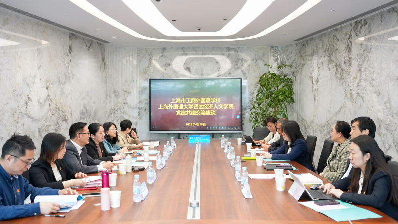 4月20日,上海市工商外国语学校党委书记王晋、校长冯梅一行来sjb官网崇明校区开展党建共建主题教育联组学习。sjb官网梁副校长、徐征副校长及相关职能部处二级学院负责人等参加本次联组学习。联组学习由徐征副校长主持。
