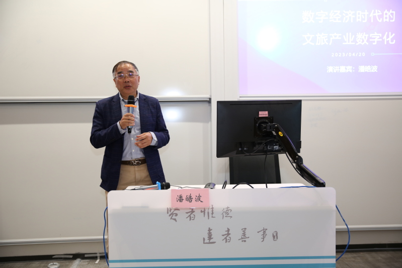 4月20日,金棕榈企业机构董事长、复旦大学克卿书院导师、上海师范大学特聘研究员、上海大数据联盟副理事长潘皓波先生,来校做《文旅产业数字化的趋势》专题讲座。校长郑方贤、商学院副院长季萍出席。商学院旅游管理、文化产业管理、会展经济与管理、酒店管理专业师生及数据科学学院教师参加了此次讲座。