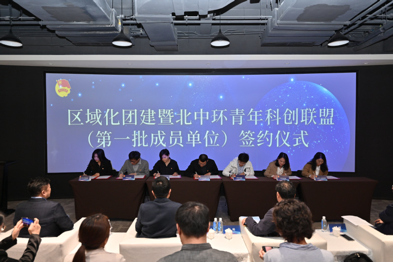 校团委书记黄爽与曲阳路街道团工委、北科创集团团支部、上海材料研究所有限公司团委、中国科学院上海技术物理研究所团委、国网上海电科院团委、上海电力建筑工程有限公司团委等6家共建单位团组织负责人共同签署区域化团建暨北中环青年科创联盟协议。