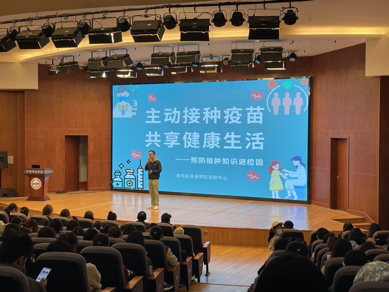 第37个国家预防接种宣传日即将到来之际,后保处携手学服中心于4月24日开展“携手青春,与爱同行”青春健康系列教育新一轮活动。崇明区疾病预防控制中心免疫预防科科长陆建,陈家镇社区卫生服务中心预防保健科姚金花及校红十字会、医务室医护人员参加活动,现场由后勤保卫处处长助理朱剑勇主持。此次讲座吸引全校450师生参与。