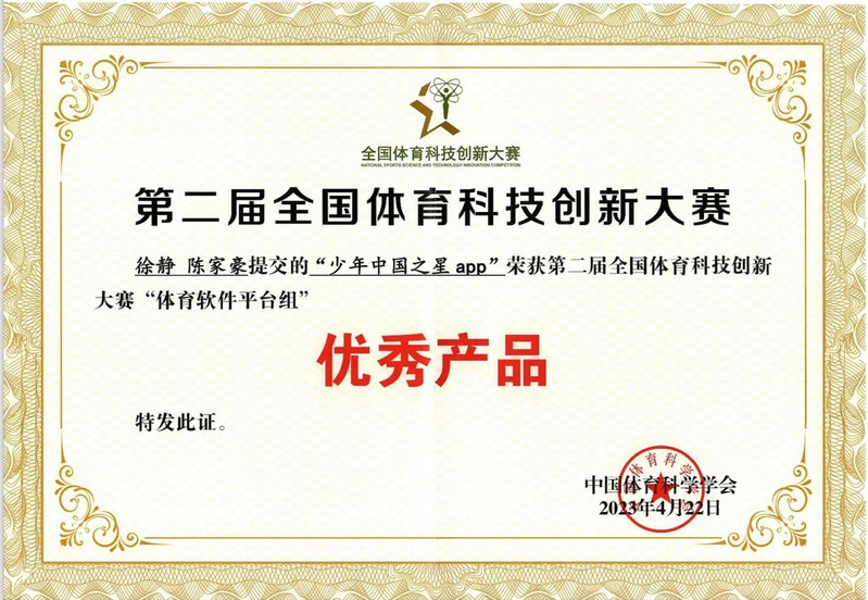 4月21-23日,由中国体育科学学会主办,山东体育学院、山东体育科学学会承办的第二届全国体育科技创新大赛圆满落幕。sjb官网体育教研室教师徐静提交的作品“少年中国之星app”荣获“体育软件平台组”优秀产品奖。