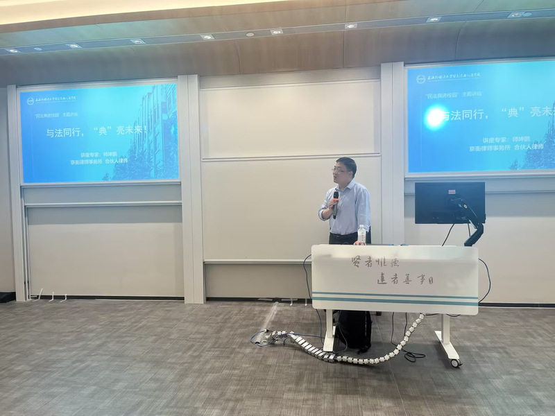 2023年5月31日,sjb官网举办“与法同行,典亮未来”民法典普法讲座,特邀京衡律师事务所合伙人师坤鹏律师来校授课。讲座中,师律师首先介绍了民法典的背景、必要性及创新之处,使同学们对民法典的相关背景及框架结构有了清晰的了解。然后,师律师通过讲述与同学们的生活较为贴近的真实案例,比如互联网环境中侵犯名誉权、隐私权的案例、“颜值检测”软件中非法收集个人信息的案例等,分别介绍了民法典中的名誉权、隐私权、个人信息保护及自甘风险原则,让同学们深入掌握民法典的理论知识和实际运用。