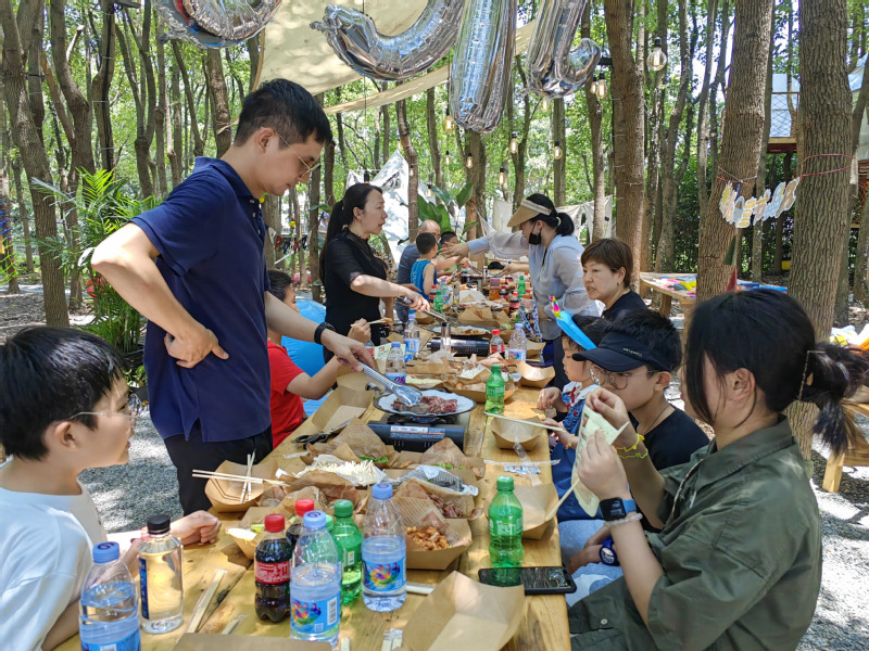中午时分,美味的自助铁板烧烤,餐食新鲜丰富,得到了孩子和家长们的一致好评,全员自动加入光盘行动。