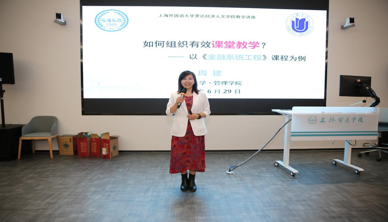 周建教授作《上外贤达公开课》专题培训。课上围绕良好的课堂引入、教学互动的方式、案例与问题的运用、信息化技术的融入、线上线下混合式教学、一流本科课程的炼成,透彻地分析了阻碍教师有效教学的原因及背景,明确的指出了如何进行有效教学的关键因素。周教授通过与现场老师们的充分互动,演绎了如何开展问题导入,什么样的课堂学生会喜欢并且真正投入,如何用好超星平台辅助教学。他重点阐述了如何进行有效教学的目标,从知识、能力、思想层面对学生进行学情分析。