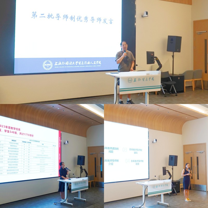 艺传学院任立卓老师作为导师制优秀教师代表发言。他分享了在指导学员过程中的心得体会和感悟,感谢领导信任和学员支持,表示会继续与青年教师为学校教学质量提升贡献力量。艺传学院杨涵诗和外语学院庄甘林两位优秀学员分别分享了自己在两年培养过程中的收获与感悟,取得的成果与对未来的展望。
