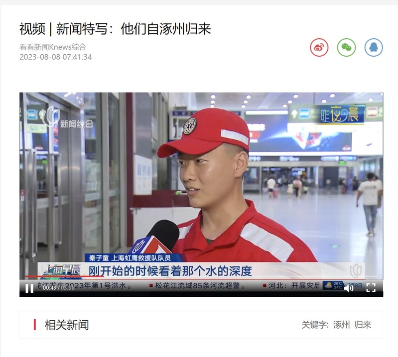 与此同时,本次涿州救援行动也得到了来自《看看新闻网》、青春上海、今日头条等多家媒体的报道。灾难无情,人间有情,贤达学子们用自己的实际行动践行着“强国有我”的号召,不畏艰险,冲锋在前,用奋斗亮出青春底色。