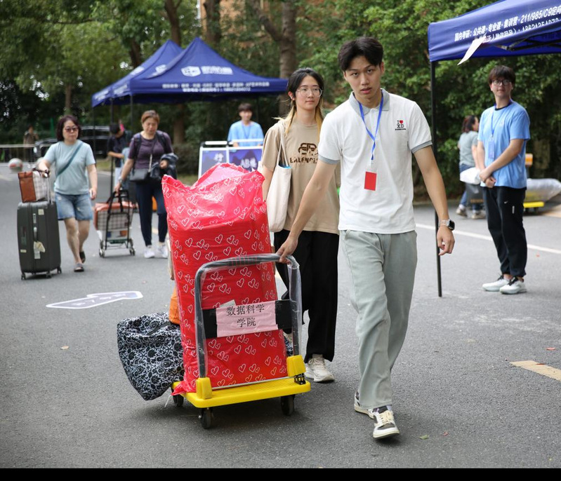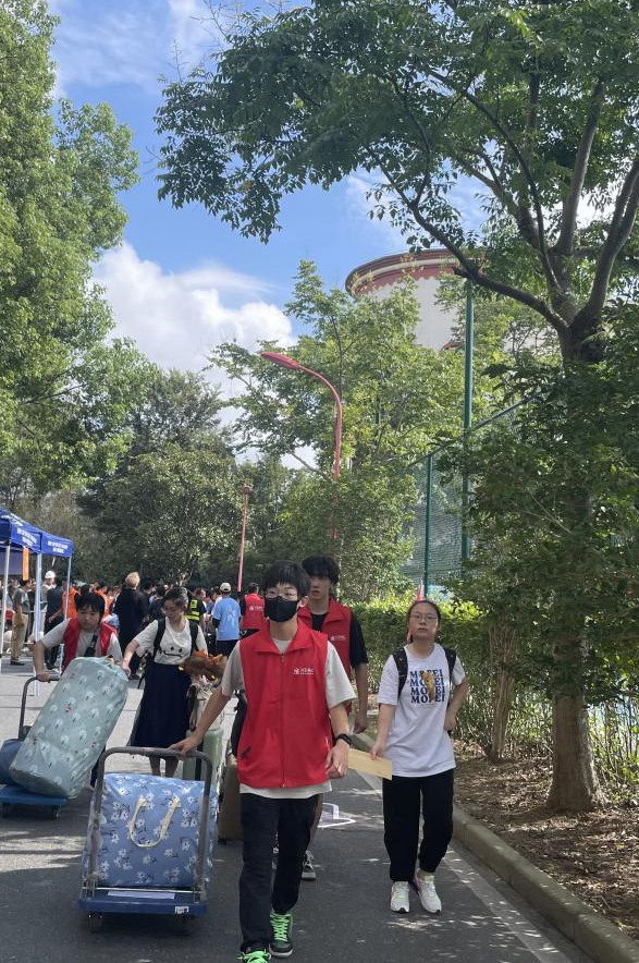 为有序帮助新同学办理报到、入住宿舍等事项,学校做足前期工作,组织学生志愿者、武装部退伍军人志愿者等,在每个环节全方位“服务”。一道道“红橙蓝绿”身影穿梭其中,贤达人正用笑容和暖心的服务迎接新生。