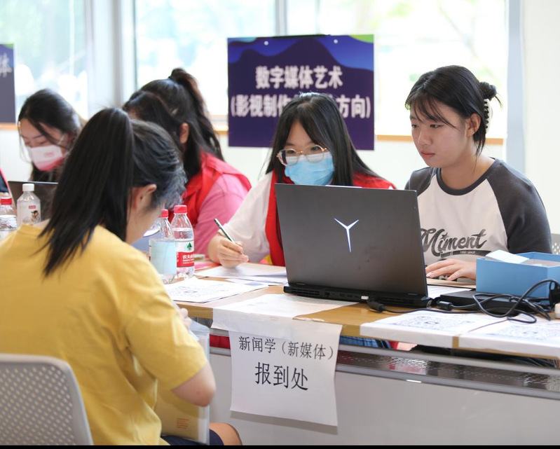 今年,学校仍然采取简化报到流程,依托“数字化迎新”平台,让新生到校前通过线上多种方式填报个人信息,完成线上报到和缴费。报到现场,只需要通过一个小小的数字电子屏,新同学在完成人脸识别的同时便可实现报到登记和个人信息的查验。各个学院的老师和志愿者们轻车熟路地完成身份验证、查验通知书、学费收缴等工作极大提高了报到效率,受到了新生和家长的好评。