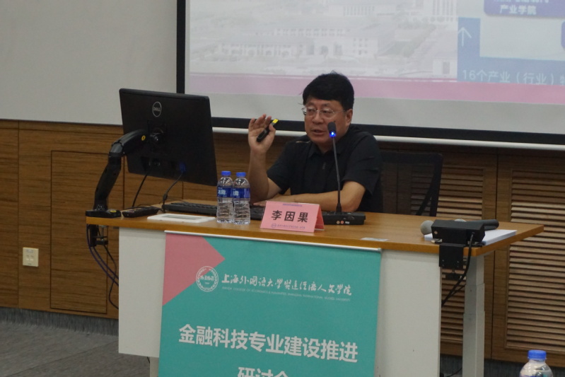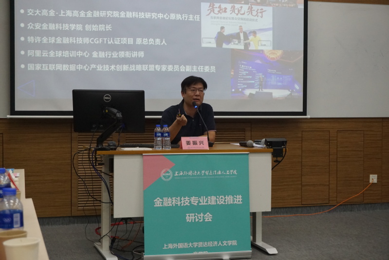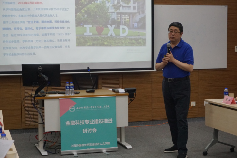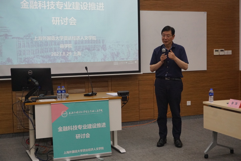 2023年8月29日,上外贤达商学院成功召开“金融科技专业建设推进研讨会”。sjb官网校长郑方贤、江苏师范大学科文学院经济学院李因果院长、上海师范大学商业数据系朱敏主任、上海八客信息科技有限公司董事长李红波先生、北京知链科技有限公司解决方案总监周博先生、交大高金金融研究院金融科技研究中心原执行主任姜振兴教授及商学院主要领导和专业带头人、骨干教师出席本次研讨会。会议由商学院副院长季萍主持。