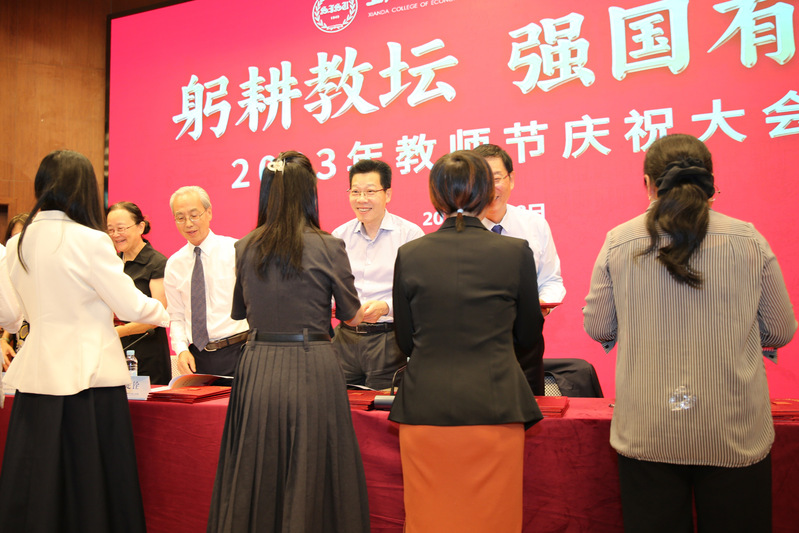 会上,鲍贤嗣董事长、陆朴鸣监事长、张定铨董事、徐征副校长、梁副校长以及党委副书记郑虹分别宣读了“突出贡献奖”、教学竞赛获奖教师名单、“贤达学术骨干”培养计划入选通知、“优秀科技工作者”表彰决定、“教学名师”入选通知和“优秀教师”“优秀教育工作者”表彰决定,校领导们依次为获奖教师颁奖。