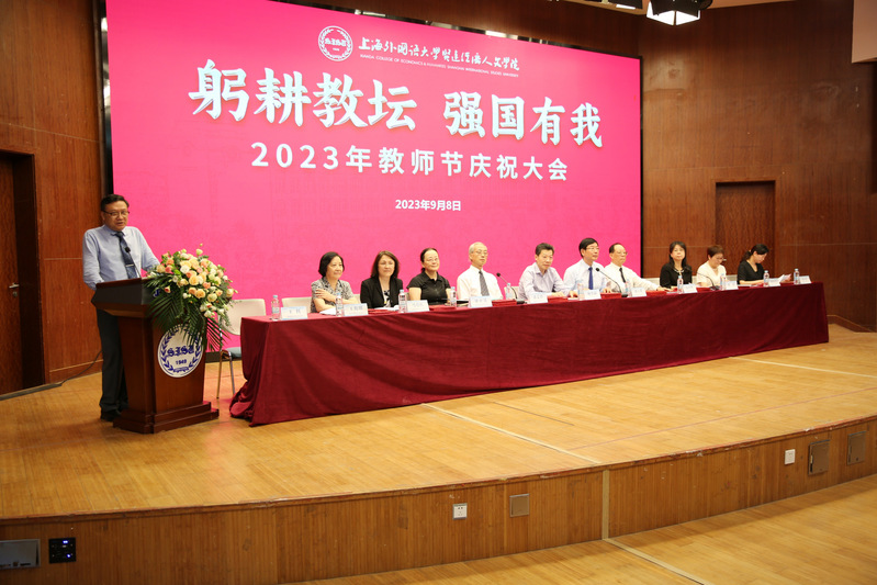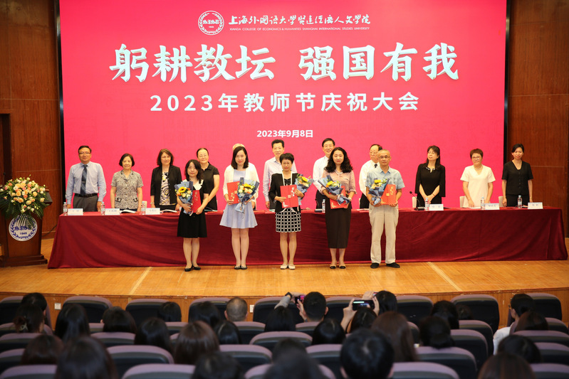 9月8日下午,上外贤达学院在崇明校区语信楼报告厅举行主题为“躬耕教坛 强国有我”2023年教师节庆祝大会,董事长鲍贤嗣,校长、党委副书记郑方贤等党政领导班子及全体中层干部、获奖教师、新入职教职工、各学院代表等参加,大会由校党委副书记王科主持。会议同时在崇明校区综合楼同传室和虹口校区行政楼报告厅设立分会场,全体教职工通过直播形式在线观看。