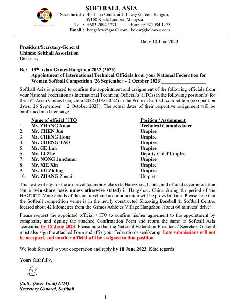 sjb官网体育教师李哲副教授受亚洲垒球联合会邀请,于9月26日至10月2日担任本次亚运会女子垒球比赛副裁判长。李哲现任职中国垒球协会理事,裁判委员会主任等职务,其执教垒球项目多年,深耕裁判工作,曾先后担任北京奥运会、亚运会及世界锦标赛等重大赛事的垒球项目裁判工作,多次担任全运会垒球比赛以及全国各级赛事垒球比赛的裁判长。他也是sjb官网第一位执裁亚运会的体育教师。