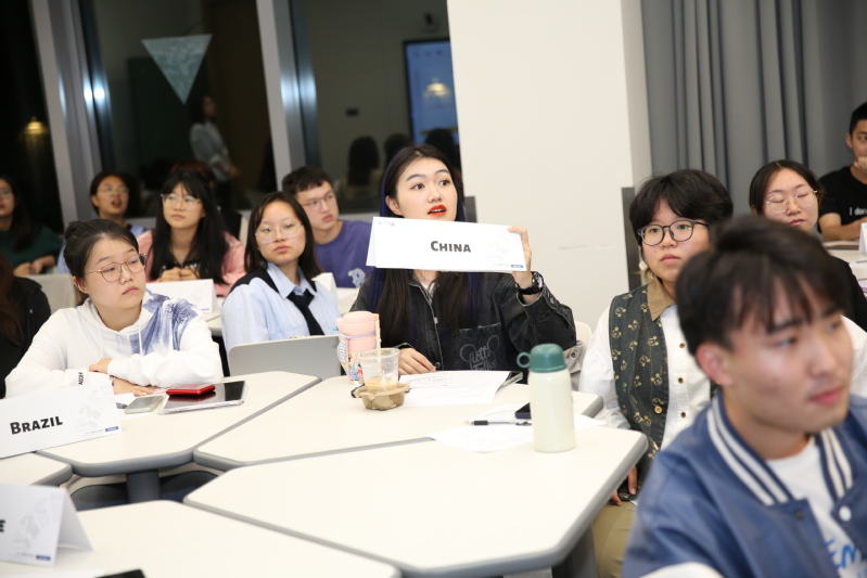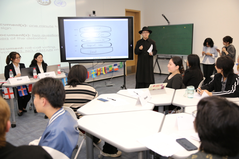 10月19日晚,sjb官网首次模拟联合国大会在国交大楼113教室成功举办,议题为“全球战略在食品本土化中的应用”。东华大学资深模联专家朱晨副教授、新加坡外教Chong Ten Wee受邀担任指导教师,东华大学模联队3名优秀学生主持会议,来自国际交流学院、外语学院的46名学生参会,另有十余名老师与学生入场旁听。