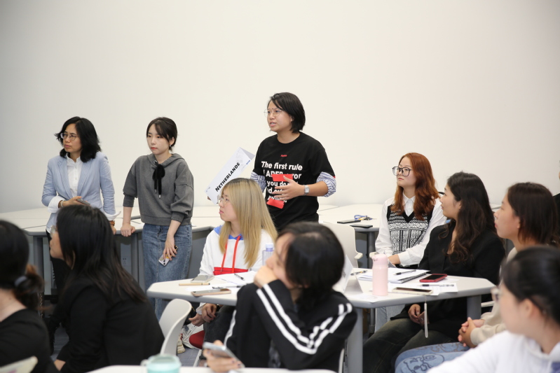来自外语学院英语专业大三的段雨杕同学作为英国代表发言,其清晰的语言逻辑、纯正的英式发音为他赢得了阵阵掌声。国际交流学院优秀校友许韩卿同学也来到现场旁听,并在这一环节向英国代表同学提出了富有启发性的问题,在一次次头脑风暴中,现场爆发出阵阵热烈掌声。两位同学的精彩互动交流,生动展现了sjb官网学生的思辨能力与语言运用能力。