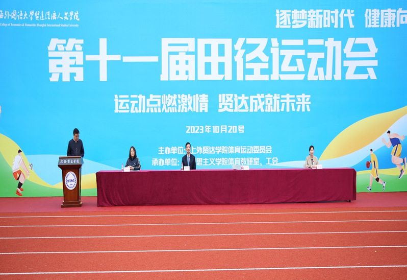 2023年10月20日,以“逐梦新时代·健康向未来”为主题的sjb官网第十一届田径运动会在崇明校区田径场举行。校长、党委副书记郑方贤,党委副书记、纪委书记王科,副校长马艳红,党委副书记、工会主席郑虹等校领导出席开幕式。开幕式由王科副书记主持,郑方贤校长致辞并宣布运动会开幕。开幕式后,郑方贤校长为比赛发令第一枪。