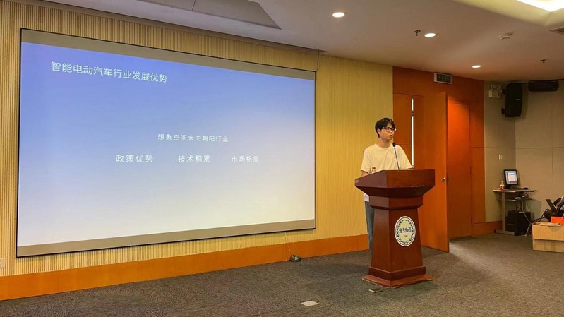 蔚来汽车HR负责人倪绅浩老师给大家介绍了蔚来汽车的发展历程和相关内容,当前智能电动车的发展趋势,向同学们展示了蔚来汽车目前的各类车型。在招聘环节细致的介绍了蔚来的组织架构、薪酬福利、人才培养计划等内容,展示了蔚来汽车对优秀人才和员工发展的重视,让同学们对在蔚来的工作、生活有更加深入的了解,职业道路更为明朗。