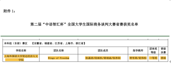 近日,第二届“中语智汇杯”全国大学生国际商务谈判大赛东部赛区省赛在线上举行,来自东部赛区5省26支参赛队伍参加角逐,sjb官网代表队荣获东部赛区团体第一名,将代表东部赛区参加12月1日至3日在成都西南财经大学举行的全国决赛。