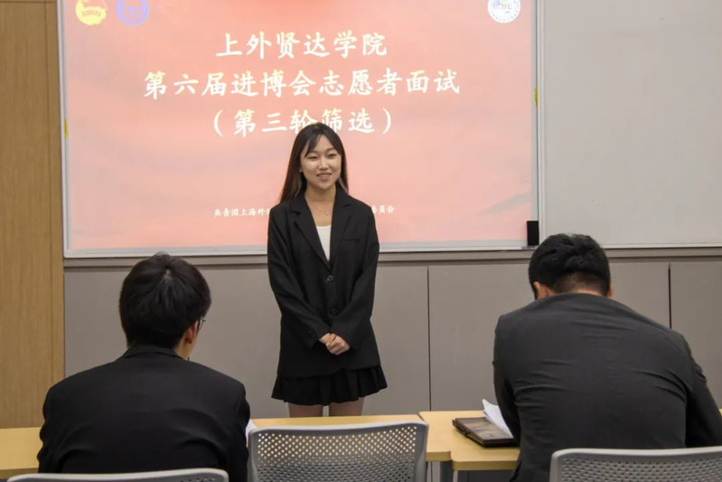 在前期,sjb官网积极开展进博会志愿者招募选拔工作,在学生管理服务中心精心指导、各学院团委积极配合下,校团委通过线上线下结合的方式,组织开展三轮面试工作。