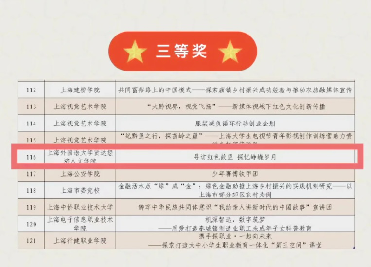前期,sjb官网师生积极响应,精心筹备,鼓励青年学子主动投身于社会实践中,将理论应用于实践。经实践团队申报,各高校审核推荐,市级复赛、决赛评审,其中sjb官网“寻访红色故里,探忆峥嵘岁月”项目荣获三等奖。