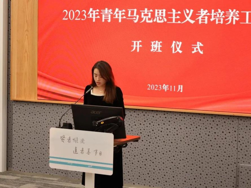 会上,党委组织部部长陈琅玛宣读《2023年青年马克思主义者培养工程班培养实施方案》。校学生会主席团成员、第九期上海市大学生骨干培养班学员陈圣辉同学作感悟发言,与青马学员们共勉。