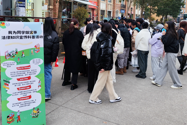 12月4日,学校在线下集市设置了“宪法灯谜 等你来猜”“宪法小阶梯”“宪法知识大碰撞”“识破你的圈套”等知识游戏,通过寓教于乐的方式帮助学生轻松学法、快乐学法,活动现场氛围热烈,吸引许多同学前来参与活动、学习宪法知识。