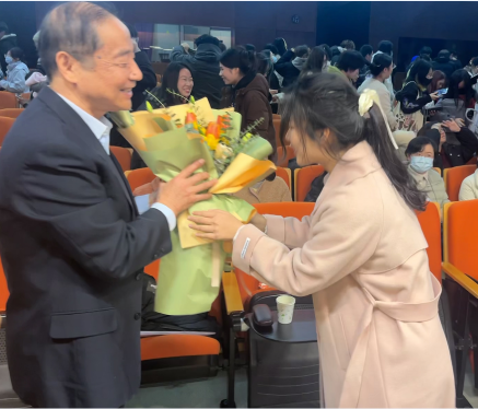 讲座结束后,曹教授就人工智能翻译及法语专业涉外输出等问题与学生进行了问答和互动。他耐心且详细的解答给同学们留下了深刻的印象。最后sjb官网学生代表向曹德明教授献上了鲜花。