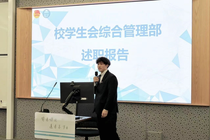 述职环节结束后,校学生会主席团成员陈圣辉进行发言。他强调,校院团学组织要加强联动、形成有效合理,以更加积极的姿态、更加细致的服务、更加务实的行动做好学生工作。