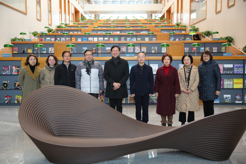 在郑校长的陪同下,姚副主任一行参观了sjb官网精英墙、国交大楼、图书馆及商管大楼,了解了sjb官网独特的建筑理念和环境育人思想。在随后的座谈中,姚副主任一行与sjb官网领导就崇明区有关人才政策进行了深入的交流。