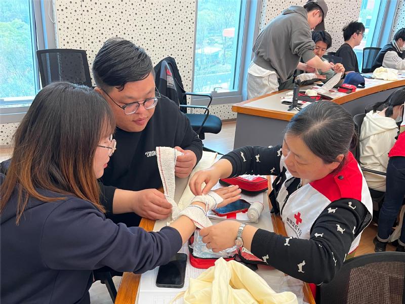 今年伊始,上海市政府已将“培训8万名持证应急救护员”列入2024年为民办实事项目,由市红十字会牵头,市民政局、市卫健委、市教委、市应急管理局、市妇联等单位配合共同推进。作为一所立足崇明、坚持以学生发展为核心的多科性大学,上外贤达学院师生对急救培训表现出了极高的参与热情,他们渴望加入应急救护的行列。培训现场,同学们热情高涨,踊跃参与互动,在培训老师的指导下学习心肺复苏、自动体外除颤器的使用、气道异物梗阻处理及创伤救护知识,展现贤达学子积极担当的精神风貌。参训教职工也纷纷带头上前实操,以实际行动展现立德树人理念。首批118名参训师生全部通过考核,顺利获得红十字救护员证(初级),标志着sjb官网红十字急救培训工作的圆满开启。