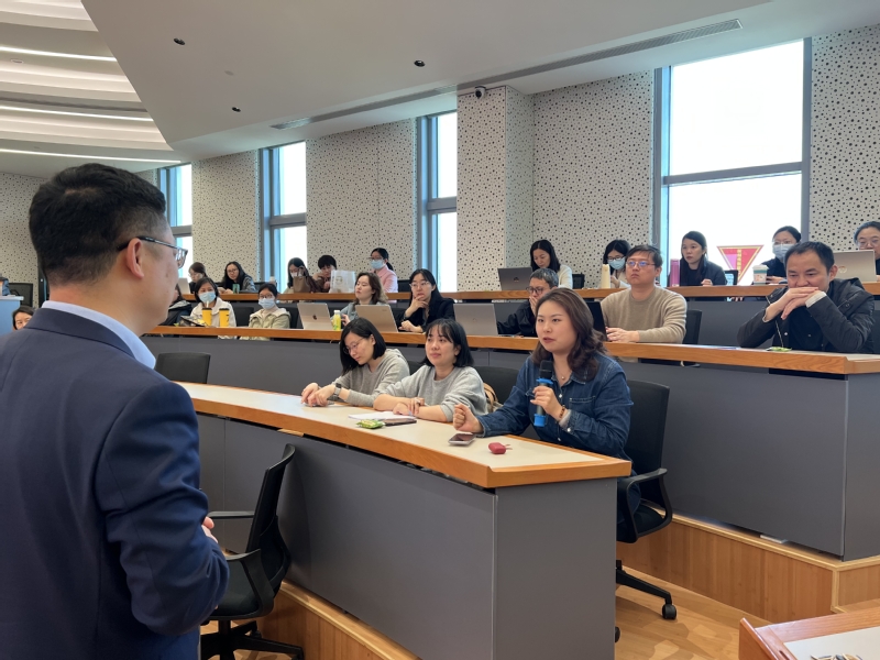 会上,陈炳亮博士演示了如何有效组织和引导学生进行案例分析。教师们积极参与讨论和互动,分享了各自的教学经验,并就案例教学的应用展开了深入探讨。培训现场气氛热烈,学术氛围浓厚。而后,中欧国际工商学院案例库院校合作经理龚静怡,向与会教师详细介绍了中欧案例库使用。