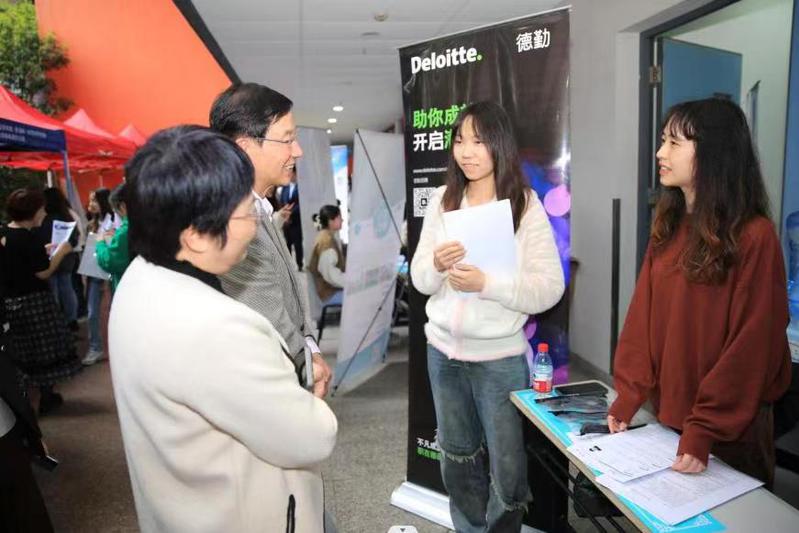 本次招聘会,学校充分利用政府资源、校企合作渠道,进一步聚合社会资源,集中提供优质就业岗位,力促学生与用人单位双向选择,促进学校学生高质量就业与实习。本次招聘会共有70余家企业参与,包括德勤企业咨询(上海)有限公司、长江证券股份有限公司上海分公司、东方国际集团上海市纺织品进出口有限公司、厦门国际银行股份有限公司上海分行、全日本空输株式会社上海办事处、上海浦东新区民办嘉宝前滩幼儿园、上海宝尊电子商务有限公司、上海蔚来汽车用户服务有限公司、复兴集团、中国青年旅行社等知名外企、大型国企,招聘岗位数多、涵盖面广,包含咨询、银行、证券、电商、新能源、教育、文旅等不同领域。