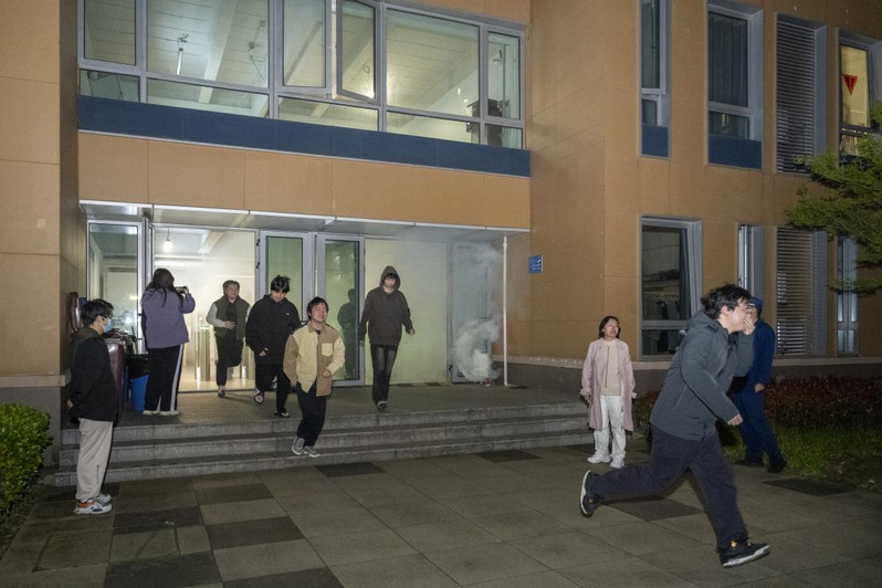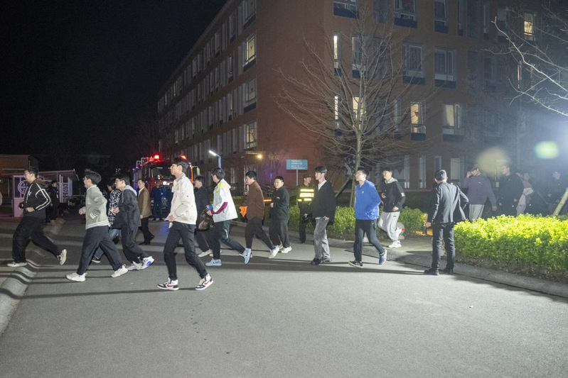 学生在辅导员和安保引导下有序安全地疏散