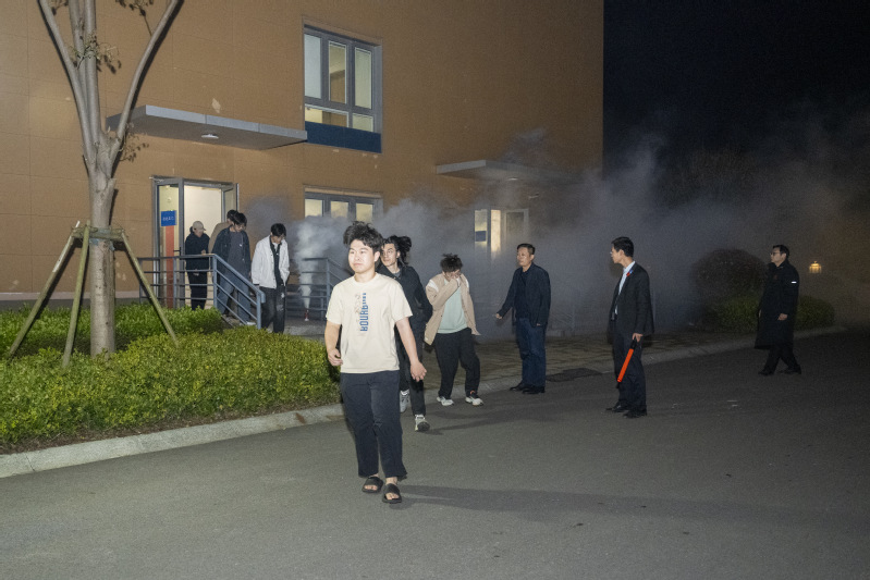为进一步加强学校消防安全工作,增强师生消防安全意识和应急处置的自救能力,筑牢校园安全防线,4月9日晚,综合运行保障中心、学生服务管理中心组织开展24号楼学生公寓夜间消防疏散演练。党委副书记王科,董事长助理、综合运行保障中心主任吕智敏,综合运行保障中心副主任顾文辉,学生服务管理中心学工处副处长付志俊参加活动。24号楼学生公寓共计600余人参加本次演练。本次疏散演练模拟24号宿舍楼3F发生火情。为确保演练活动安全有序进行并取得实效,参演各部门高度重视,从演练内容、疏散路线、师生动员、物质保障、安全措施等多方面着手,精心策划,周密部署。