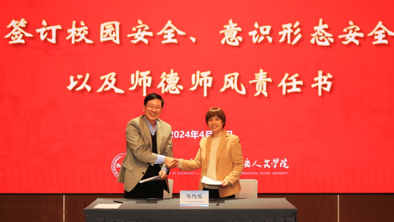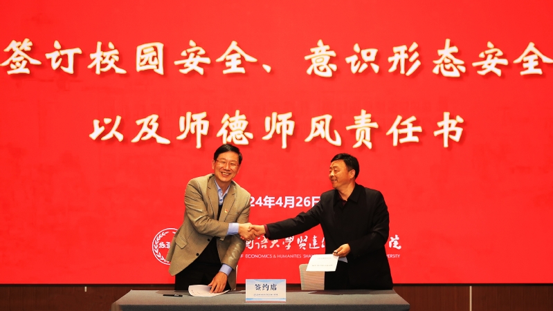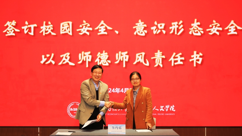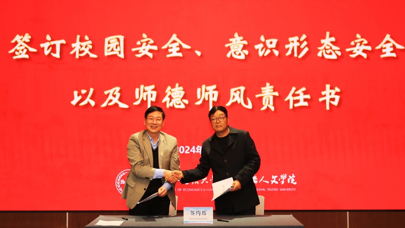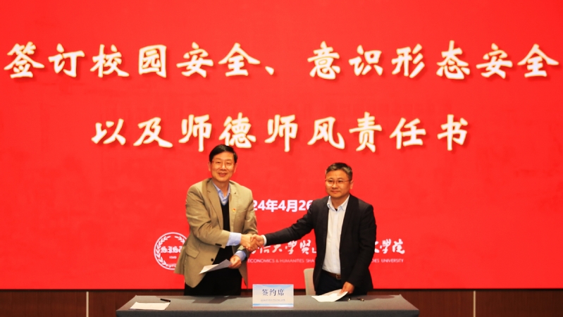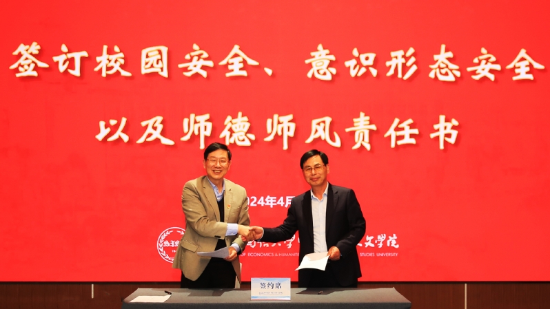 会上,郑方贤校长还与各院、中心、部、处代表签订了师德师风建设、意识形态和网络安全工作以及校园安全责任书。