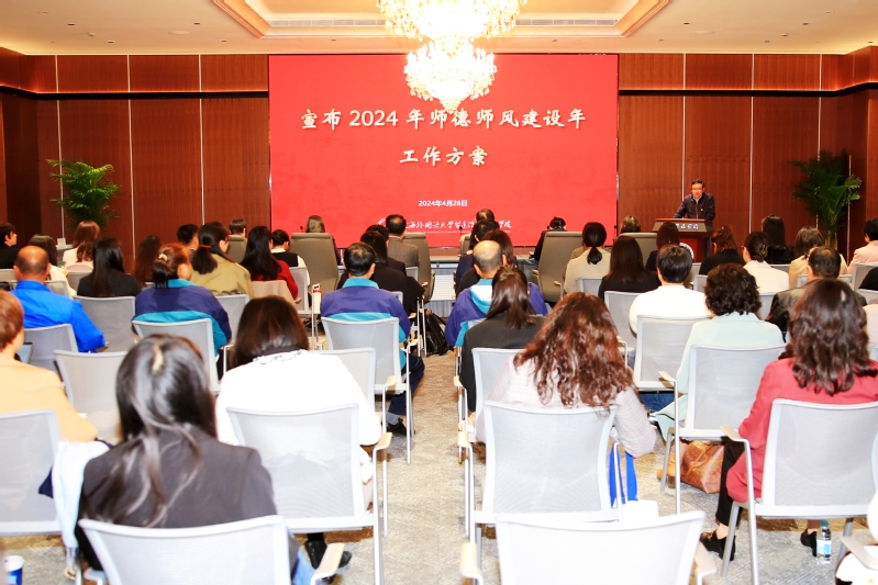 4月26日下午,在崇明校区商管楼310会议厅召开了2024年师德师风教育建设年启动仪式暨2023年度单项嘉奖表彰会。校领导,各院、中心、部、处党政主要负责人,全体党务干部及2023年度单项嘉奖获得者参加了会议。会议由校党委副书记、纪委书记王科主持。