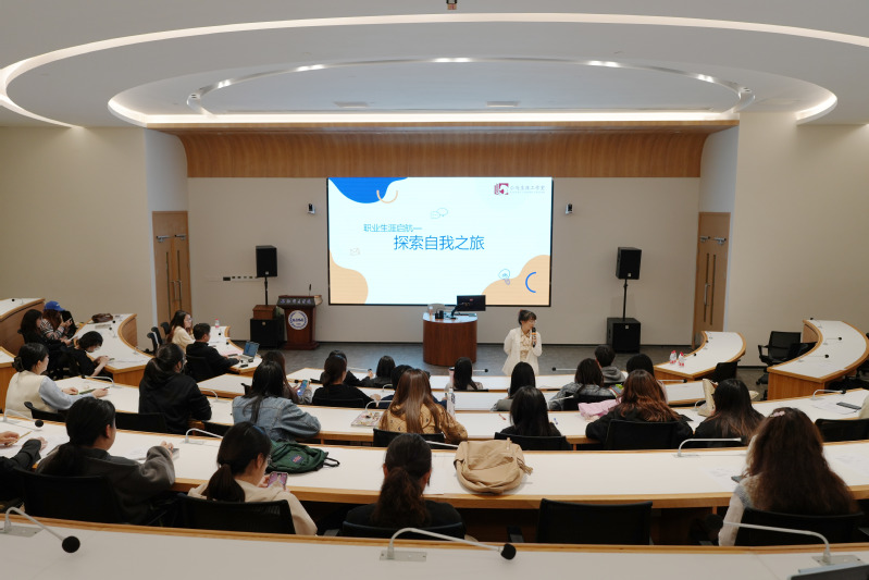 仪式结束后,国际交流学院邀请GCDF全球职业生涯规划师、BCF职业规划师王刘贞卉老师为在场学生开展题为“职业生涯起航——探索自我之旅”的主题讲座。王老师对目前就业环境现状进行分析,介绍了职业发展的多条选择路径,随后通过互动游戏引导同学们从人格特质、职业兴趣、职业价值观、个人潜能等角度出发深入剖析自我,探索最适合自己的职业道路。