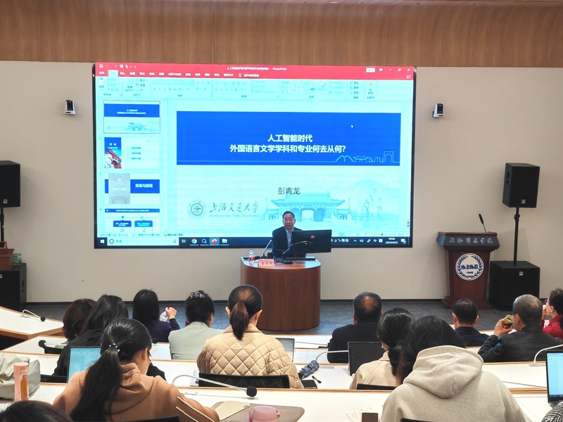 彭教授从危局与困境、变局与机遇、格局与出路切入,从不同的视角详细分析了外国语言文学学科和专业面临的局面,阐述了技术因素对外语学科带来的冲击和机遇。他鼓励sjb官网教师要具有国际视域,正视世界科学中心的第五次转移,把视野聚焦在人工智能、基因工程、量子工程带来的重大变革,理解“人类机器化、机器人类化”的新变化。他希望sjb官网教师关注“新四用原则”:一是更大力度的古为今用,二是更加深刻的洋为中用,三是更加包容的科技新用,四是更加务实的学研致用。