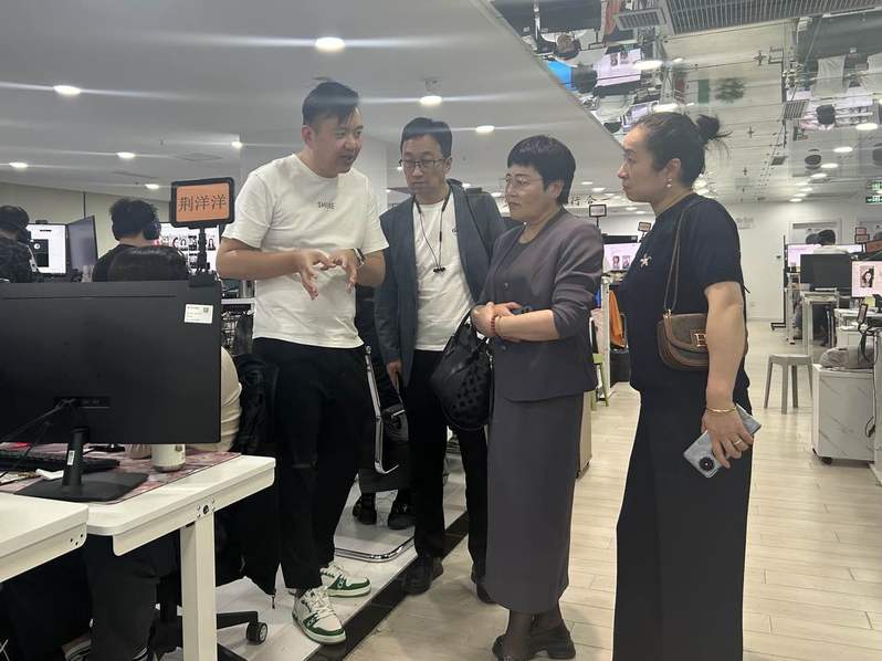 在企业领导陪同下,罗玲芳副校长一行首先参观了公司直播间、运营办公室,简要了解了该公司的业务范围及运营现状。随后双方就合作设想、目标和具体路径展开了交流。新心文化校企负责人张煜详细介绍了公司的历史发展脉络、企业文化及未来的发展目标。该公司作为一家专门从事直播内容服务的新型传媒公司,致力于为每一位合作主播提供人设定位、形象包装、运营策划等专业技术支持。靳雄老师详细介绍了艺术与传媒学院的基本情况、特色专业,他建议可以通过讲座、宣讲会等形式,让学生从专业角度了解直播行业,并通过输送学生实习、见习等形式,形成资源共享,加强校企合作。
