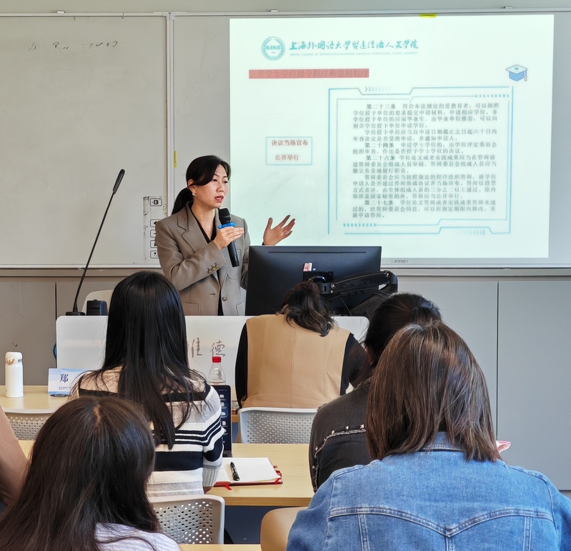 会上,教务处负责学籍管理的卜宁老师,就2024年毕业审核工作要点进行说明,详细介绍了对毕业审核和学位授予的流程、节点及要点进。郑虹副书记带领与会人员深入学习《中华人民共和国学位法》,并就授予学位的合规性进行指导,要求与会人员要按照规章流程合规操作。