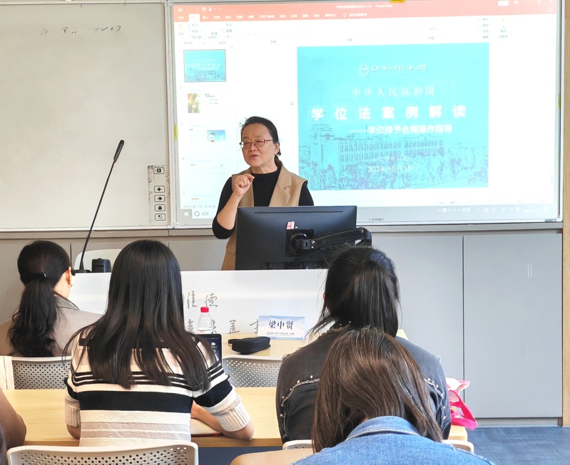 梁副校长感谢教务处和法务审计部对学士学位颁发工作的重视和培训。她强调一要严格落实教育部学位条例和学校学位管理实施办法的要求,深入理解政策精神,有序推进工作开展。二要依据政策办法与学生沟通交流,学会分析问题解决问题,使工作流程更加完善和规范。